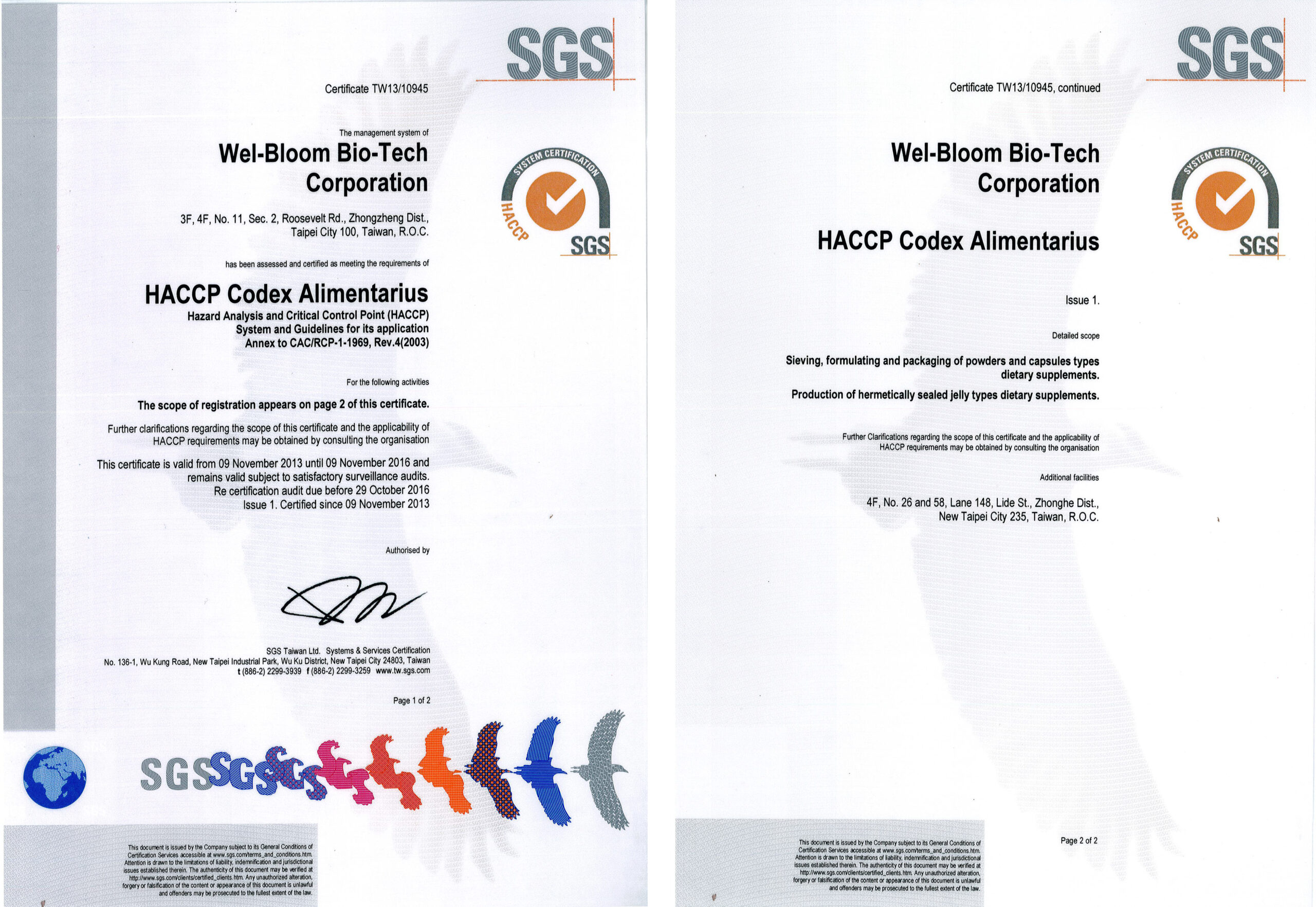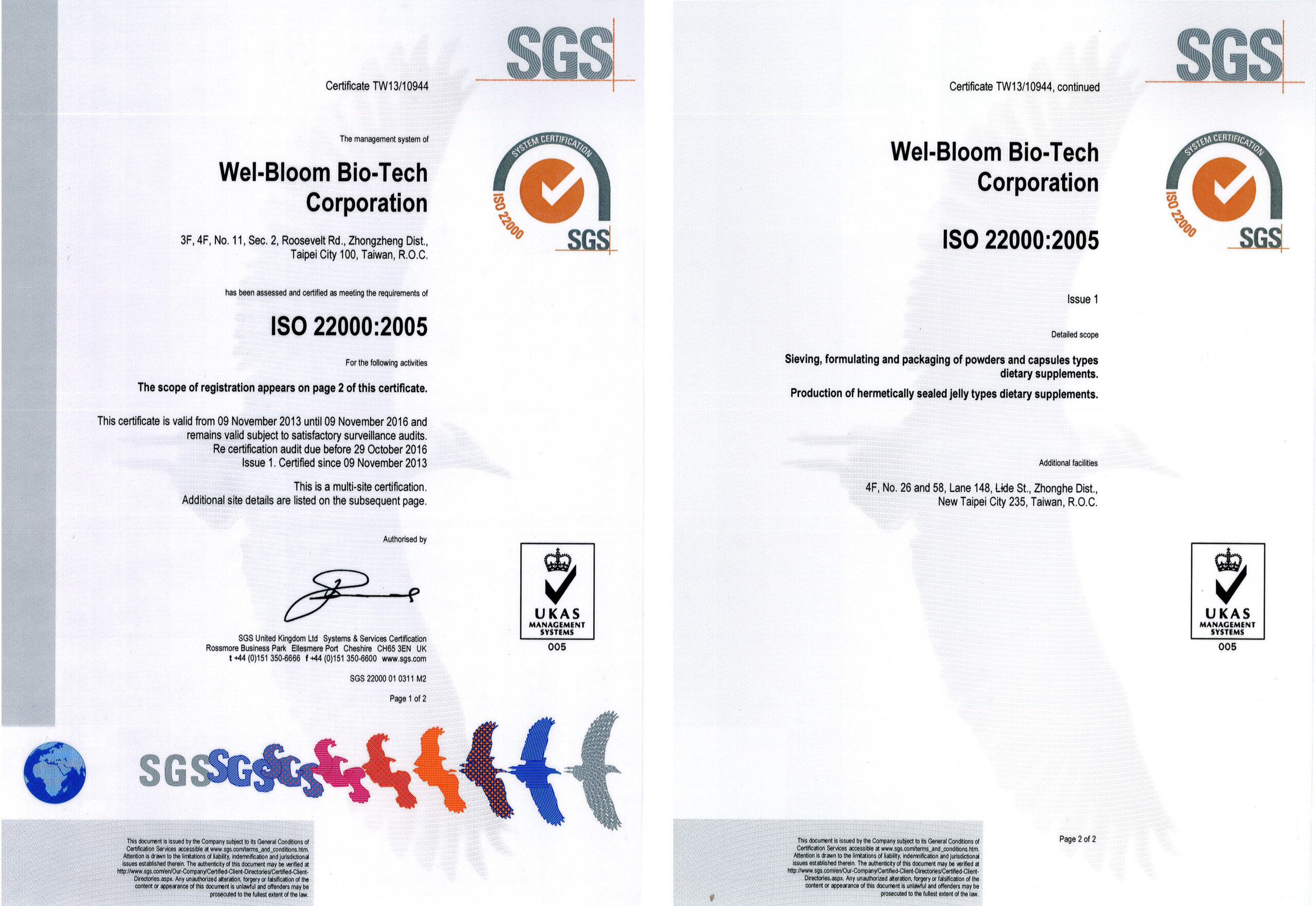 身為專業的保健食品廠,認證是品質的保證,品質是我們的承諾。