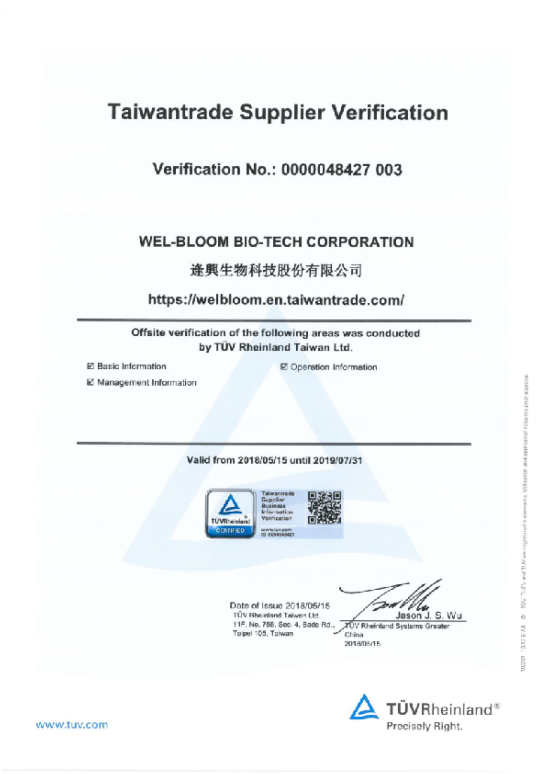 逢興生技產線與產品取得多樣認證,高品質有保障,不只提供保健食品代工服務,更提供協助保健食品認證,協助客戶代工產品取得各國保健食品與健康食品認證及註冊登記,讓客戶的保健食品銷售到全世界。