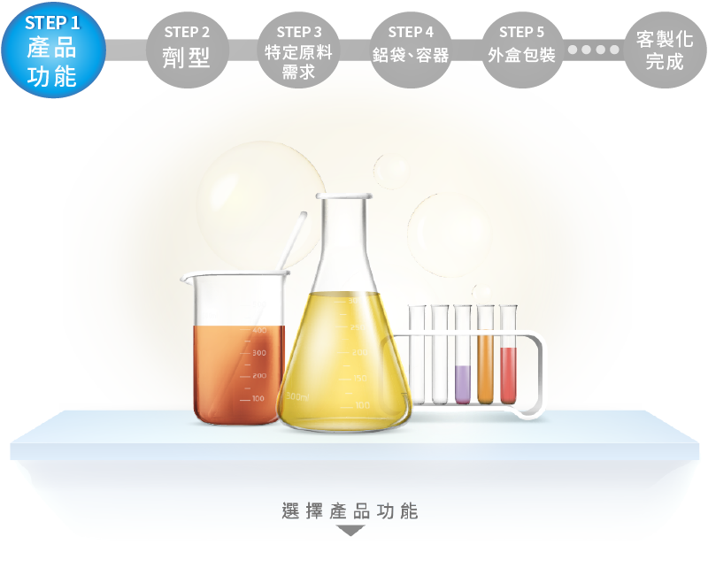 以上都沒有您想要的保健食品功能嗎?如果您有獨特的想法,請點選專屬功能,流程結束後點選加入詢價單,我們將會有專屬業務經理迅速為您服務。