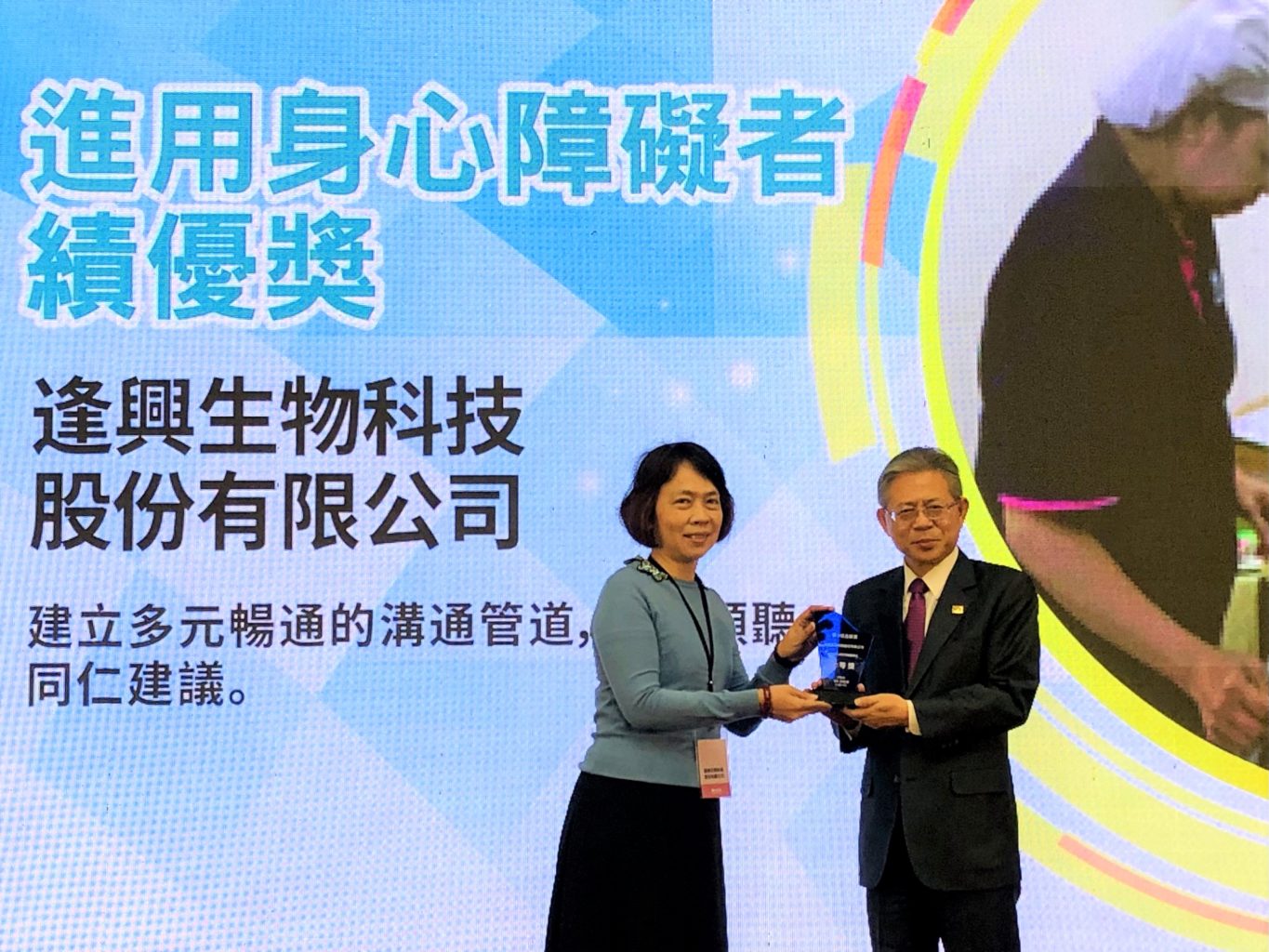 ▲逢興生技獲得「進用身心障礙者績優單位–二等獎」。