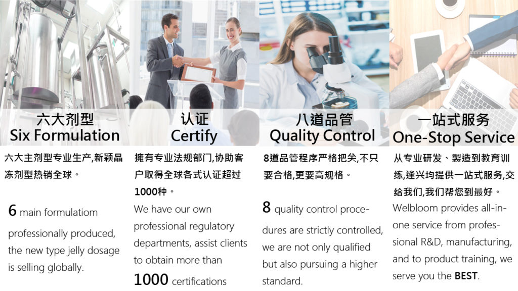 逢興生技從專利原料、客制化配方、最適口感與行銷包裝,提供所有客戶專業的認證協助與教育訓練,增加產品的競爭力。