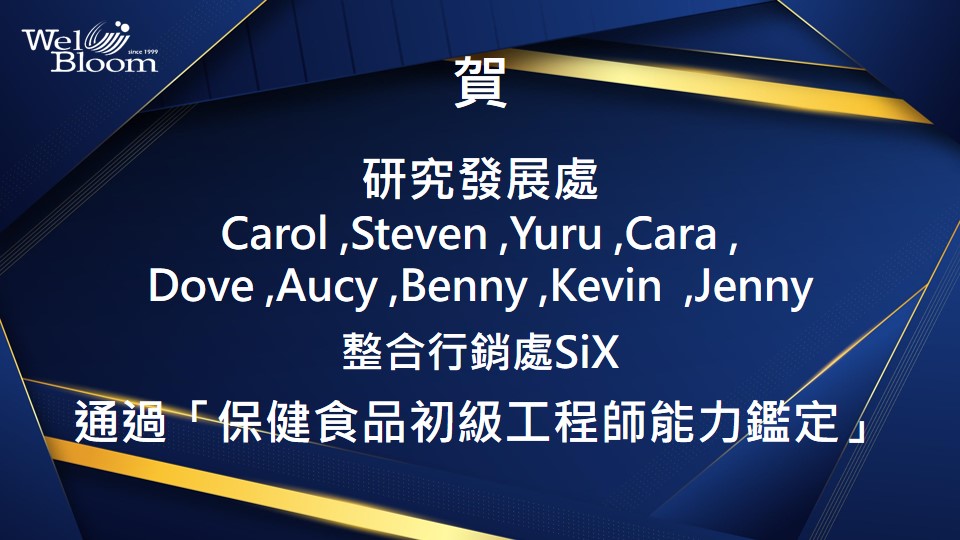 逢興生技秉持著持續精進自我的精神,鼓勵同仁們參與保健食品初級工程師能力鑑定,今日(13日)結果放榜,本公司含研究發展及整合行銷部門共計10人通過鑑定!恭喜各位同仁們為人生再添一筆輝煌紀錄!