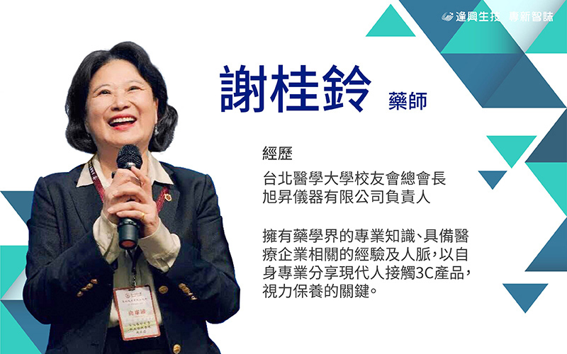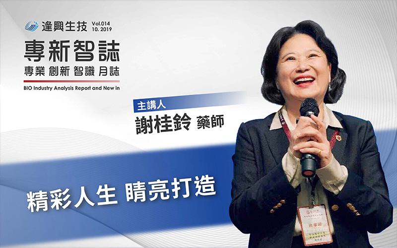 謝桂鈴,旭昇儀器有限公司的負責人,臺北醫學大學醫藥學系畢業,在競爭激烈的商場,用專業醫藥背景,致力於引進世界高科技醫療設備及耗材,提供醫師與病人最先進的醫療產品與最完善的服務。飲水思源如她,在擔任第12屆北藥校友會會長時,把藥學系校友會升格為「中華民國臺北醫學大學藥學系系友會」並擔任創始會長,與學校藥學系、北藥文教基金會密切合作,共謀系友之福祉,為系友會留下盛名。逢興生技特別邀請藥界之光的謝董事長,如何在事業衝刺與身心維護的平衡點精準保持,特別與我們分享:精彩人生,需要睛亮打造。