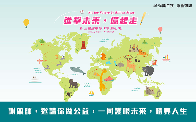 健康長壽是我的理想生活目標,在年邁之際還擁有健壯的身體與樂觀的心境,是各大研究與書籍訴求的健康人生:養成良好使用視力的習慣;攝取身體不足的營養素。「進擊未來,億起走!」的公益活動,可以提醒自己工作之餘也要休息,讓眼睛休息,散散步!不管用什麼方式,都記得忙碌之餘也要愛惜自己。拼命工作是為了人生,但精彩人生,需要睛亮打造。
