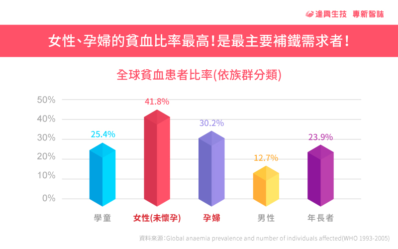 全球四分之一人口貧血!其中女性為最主要貧血補充需求者!